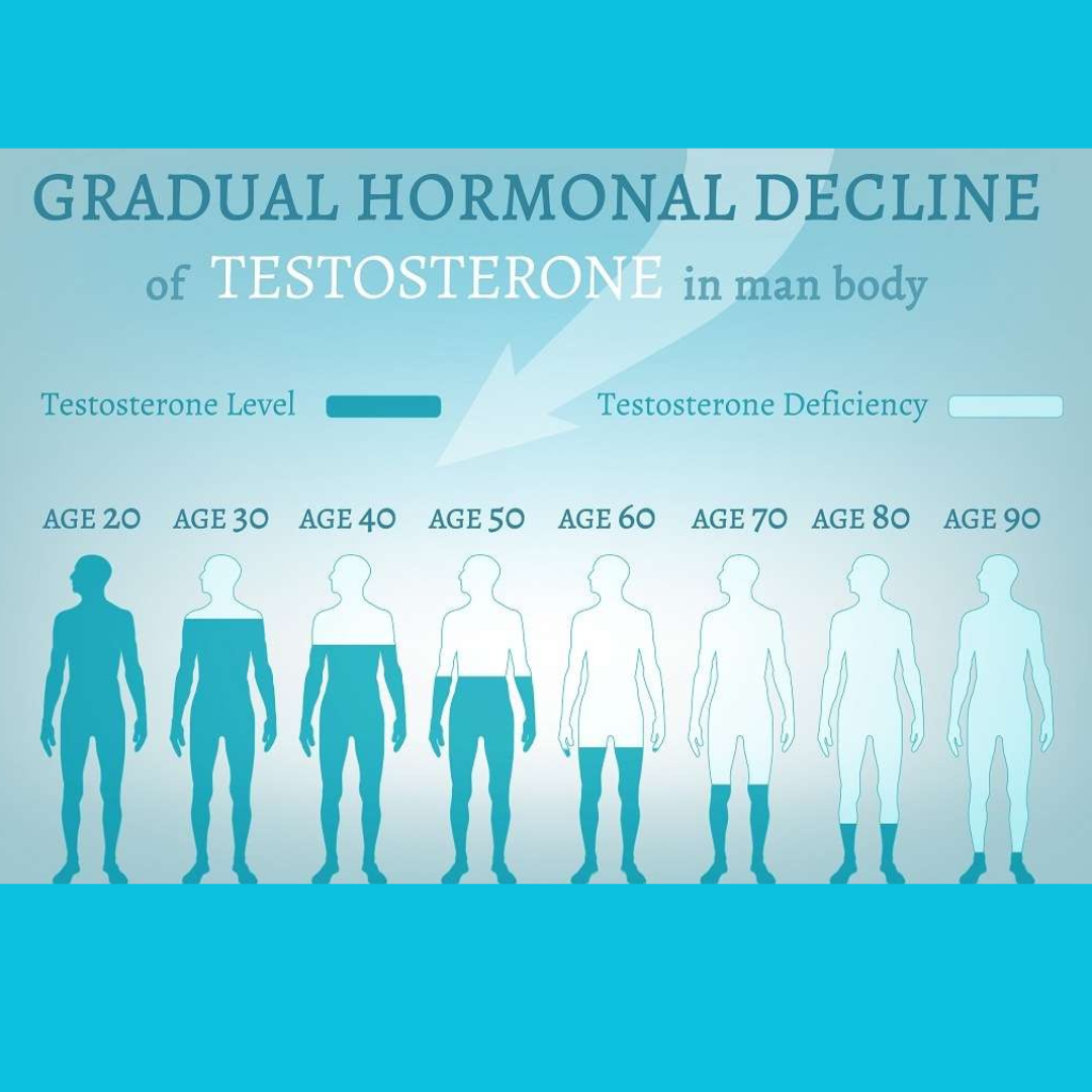 Testosterone levels generally peak during adolescence and early adulthood. Testosterone levels gradually go down with age – typically about 1% a year after age 30. For older men, it is important to determine if a low testosterone level is due to normal aging or if it is due to a disease such as hypogonadism.